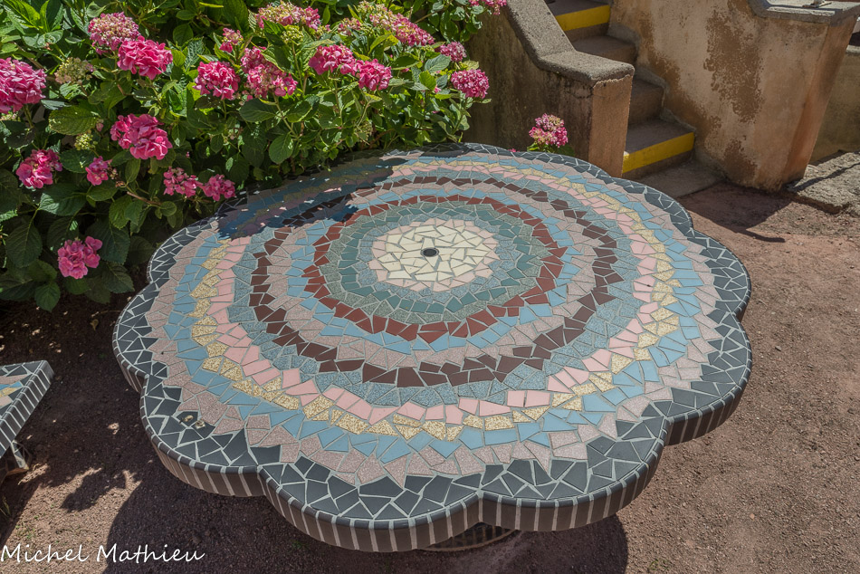 Mosaïque exécutée en août 2012 au cours d’un stage chantier dirigé par Marie-Laure Besson et Mélaine Lanoë, et réunissant 8 mosaïstes.