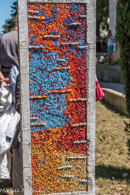 Mosaïque exécutée en août 2011 au cours d’un stage chantier dirigé par Marie-Laure Besson et Mélaine Lanoë, et réunissant 16 mosaïstes.