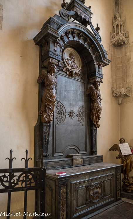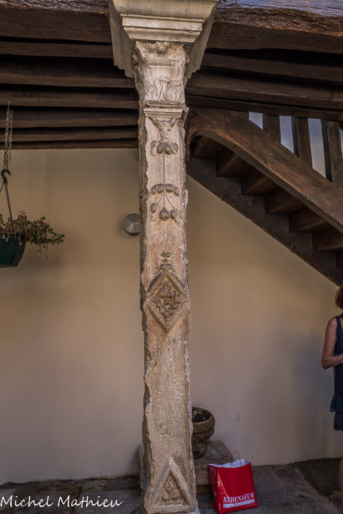 A droite de la façade, la Chapelle de Bouton des années 1530 présente une balustrade à galerie de bois et un riche décor de frises sculptées de la Renaissance.