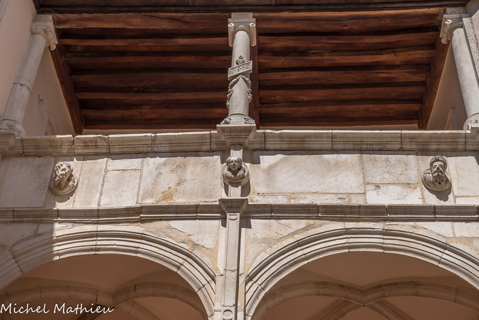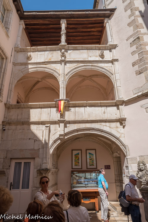 La cour principale est bordée sur trois côtés par des bâtiments d'un étage. Le bâtiment du côté de la rue Paradis présente une façade Renaissance allégée par de larges baies à meneaux surmontées d'arcs en accolade.