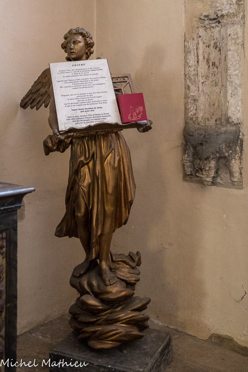 Les portails sous le porche, mutilés à la Révolution, ont perdu leur décor, à l’exception des vantaux du 15e siècle et de la statue de la Vierge du 19e siècle.