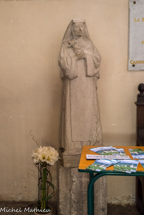 La Vierge est la patronne de la ville de Beaune. La grappe l de raisin qu’elle tient avec l’Enfant évoque la place essentielle que tient le vin dans la religion chrétienne. Assimilé au sang du Christ dans la liturgie, le vin voit sa production et sa consommation fortement augmenter dès le début de l’époque médiévale. Les évêchés et les établissements monastiques possèdent un nombre important de vignobles. Produisant du vin pour le culte et pour répondre à leur devoir d’hospitalité, ces communautés religieuses ont joué un rôle déterminant dans le développement du vignoble et du parcellaire viticole bourguignons.