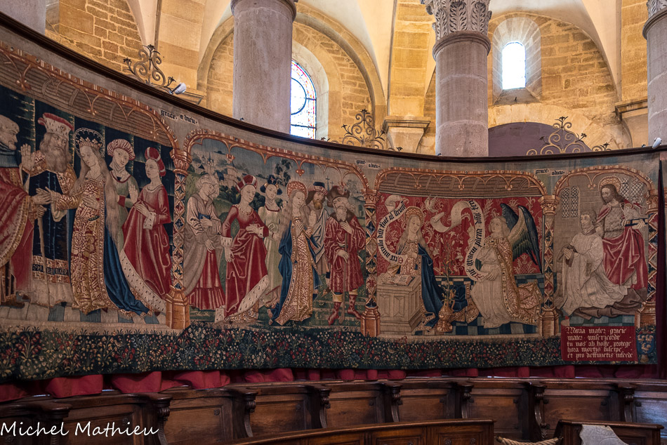 Tapisseries de la Vierge, dites "à mille fleurs", tissées en soie et laine sur 19 panneaux. Le quatrième l'adoration des mages, la purification, la fuite en Égypte,