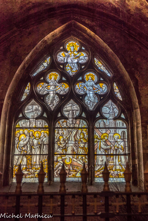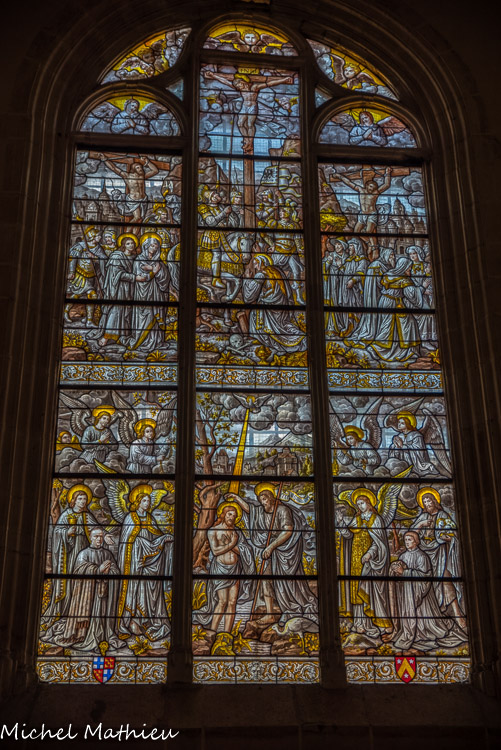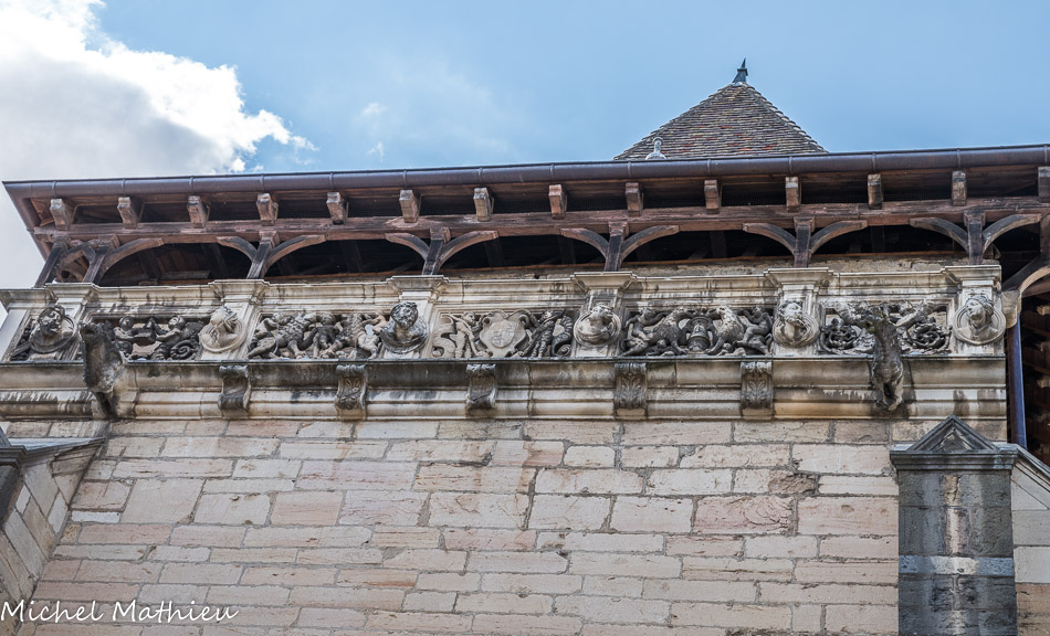 Tapisseries de la Vierge, dites "à mille fleurs", tissées en soie et laine sur 19 panneaux. Les patrons en furent commandés à Pierre Spicre par le cardinal Jean Rollin en 1474. Il les peignit à la détrempe sur toile, d'après les récits apocryphes de la légende dorée de Jacques de Voragine, recueil de la vie des saints paru en 1260. Elles ne furent offerte au chapitre de Beaune qu'en 1500. Elle commence par le baiser d'Anne et de Joachim (conception de Marie très prude), sa naissance, sa présentation au temple,