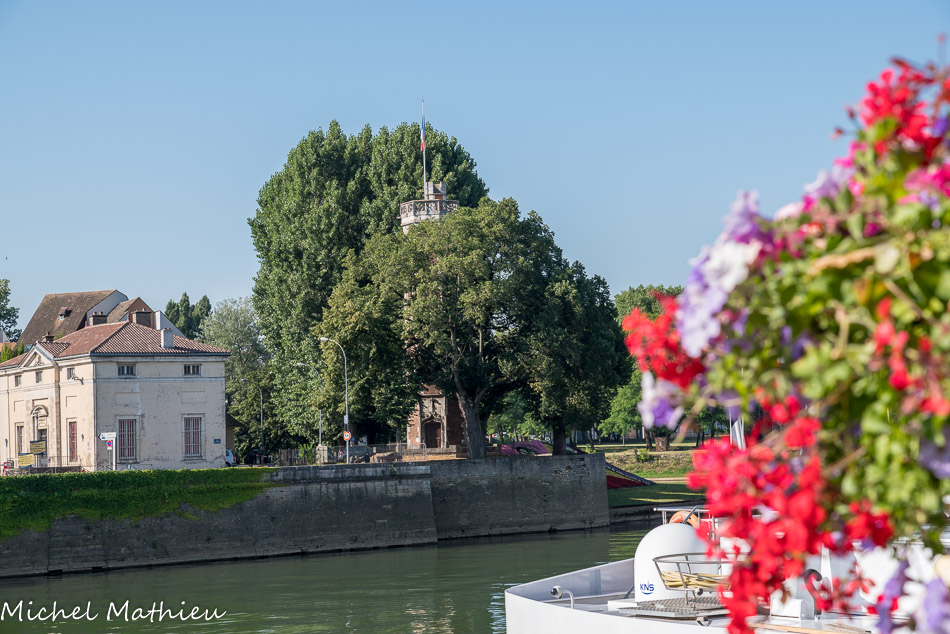 Bateau de croisiéristes qui vient d'Arles, en passant pazr Avignon et Vienne. Malheureusement le canal du Rhône au Rhin a été abandonné..