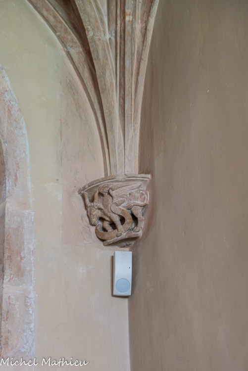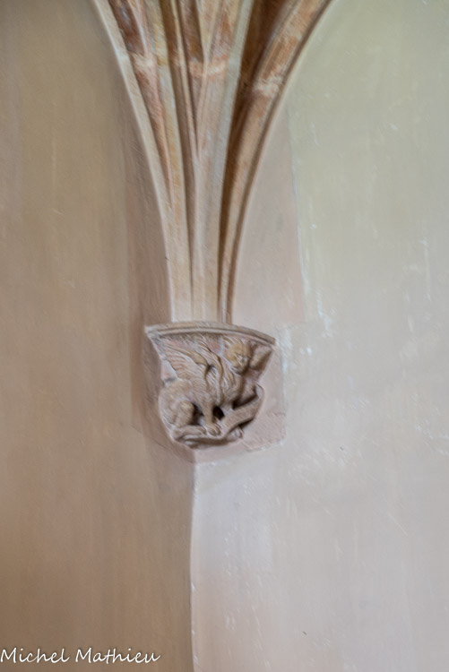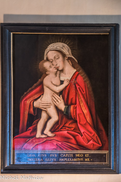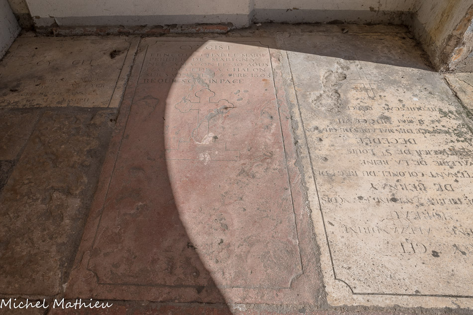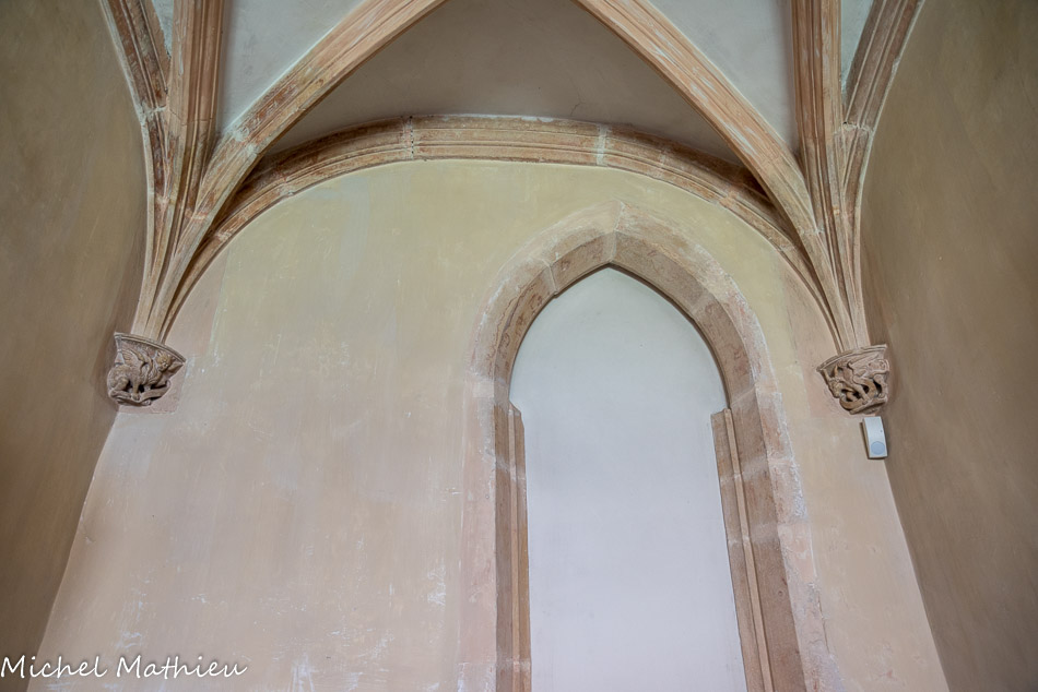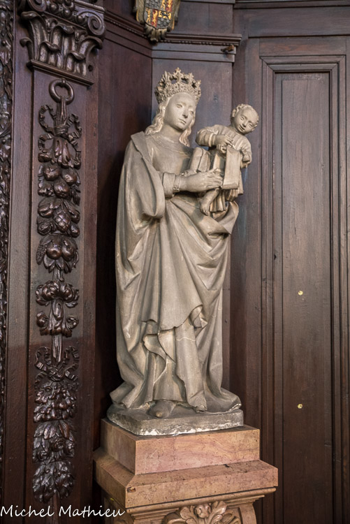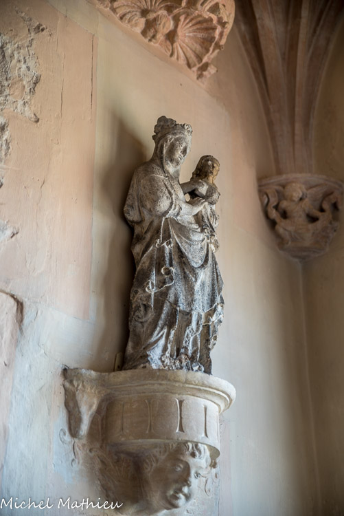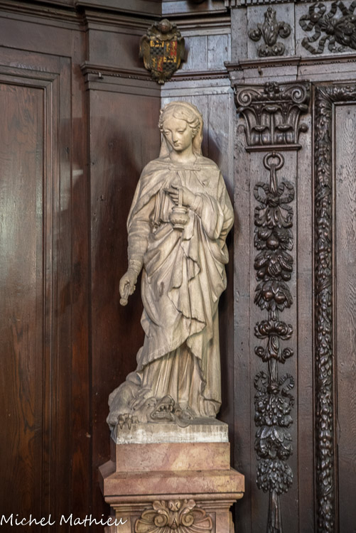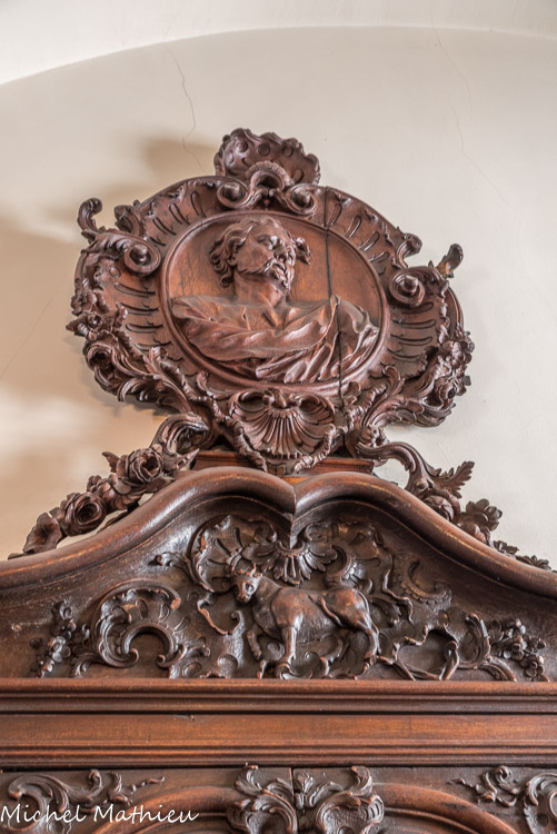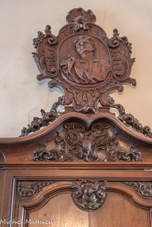La chapelle a recueilli des œuvres d'art provenant des parties démolies : boiseries armoriées