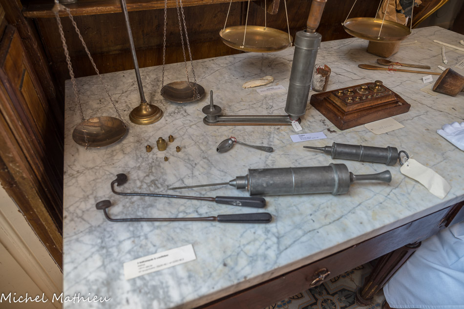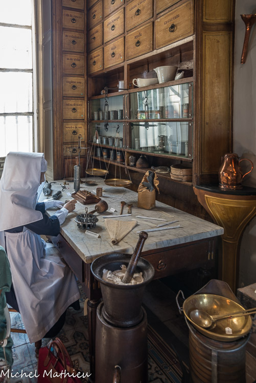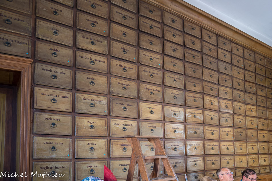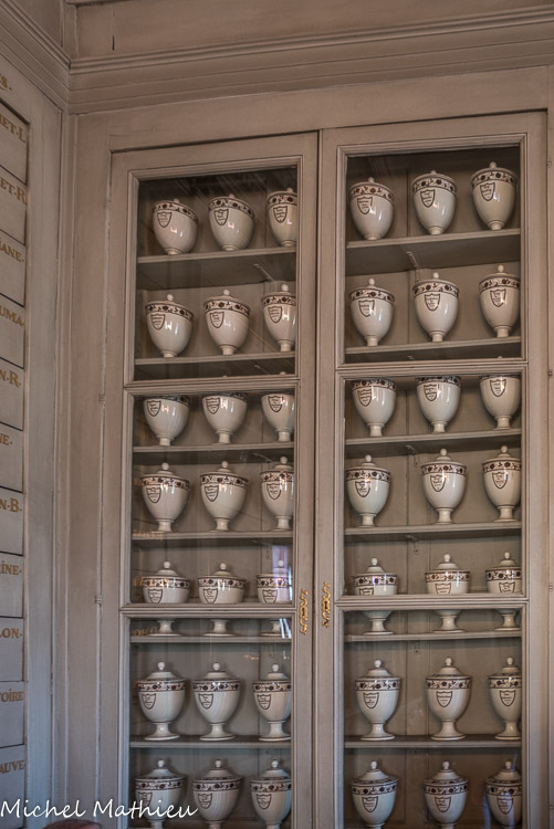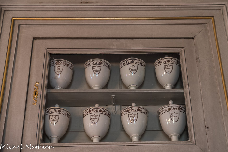 On peut ainsi admirer la pharmacie du XVIIIe siècle abritant près de 400 tiroirs.