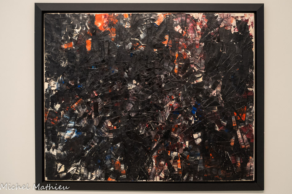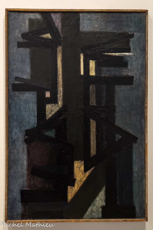 Présentée à la galerie de France en 1951 puis à la Biennale de Venise en 1952, cette toile est composée de grandes diagonales noires formant un réseau noueux, qui prend place sur des bandes colorées à l’arrière-plan.