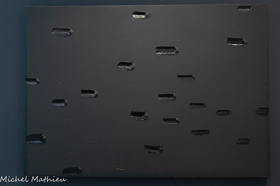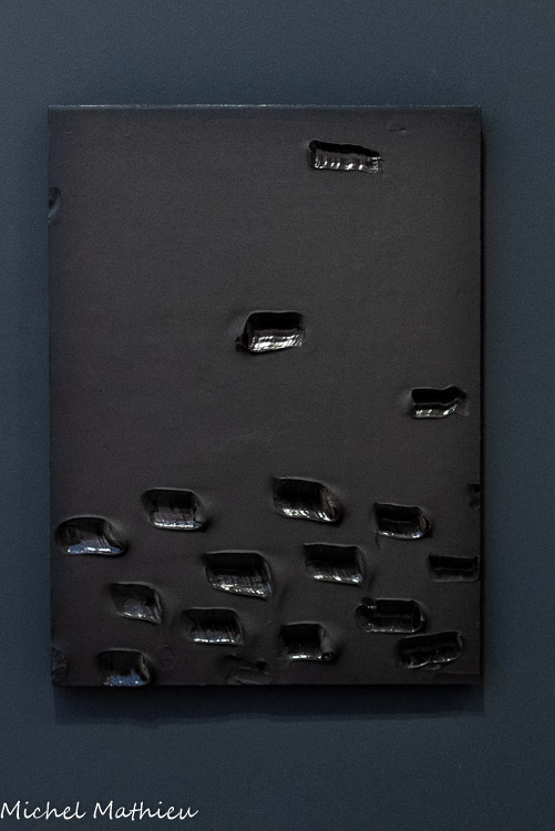 Un carré blanc légèrement décentré vient illuminer la surface rugueuse. L’œuvre est très vite repérée et acquise par Alfred Barr, conservateur du Muséum of Modem Art de New York. Présentée dans plusieurs villes des États-Unis, à l’occasion de la grande exposition collective « The New Decade », celle-ci est finalement restituée à l’artiste en 1984, échangée contre une autre par le MoMA, puis donnée au musée Fabre en 2005.