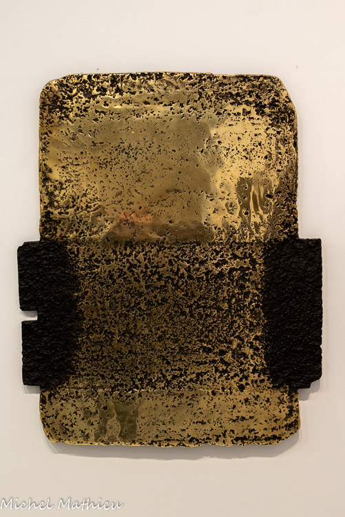 Huile et feuille de métal sur toile