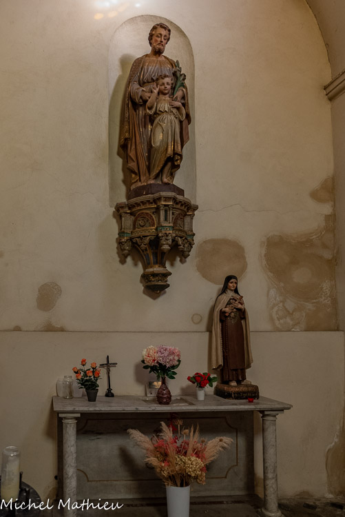 La chapelle Saint Joseph. Statues de saint Joseph et de sainte Thérèse de l’Enfant Jésus.