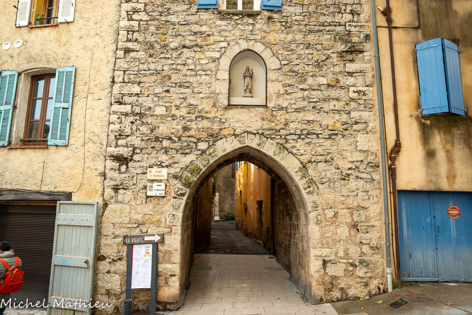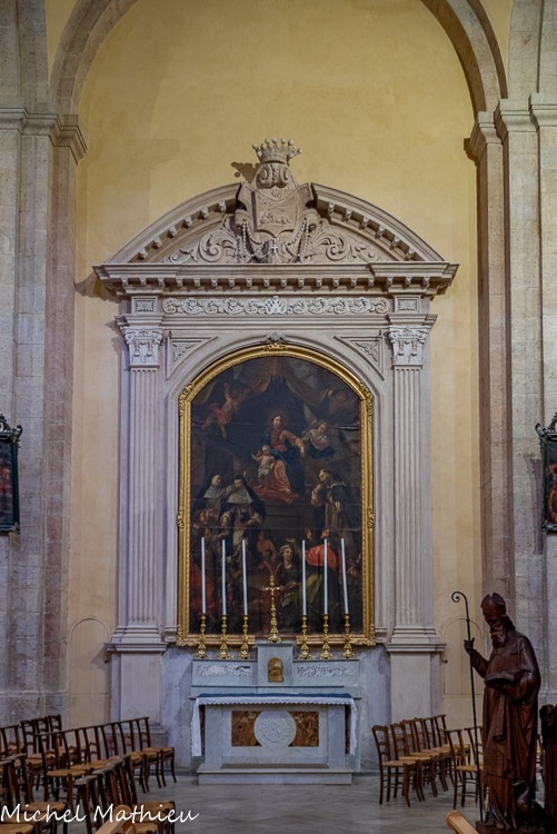 <center>Lorgues</center>A gauche de l'entrée. L'archange Raphaël  conseille à Tobie de prendre le poisson qui va guérir de sa cécité son père, et Sara, sa future femme, tourmentée par sept démons. Encadrant la porte, l'archange Raphaël.