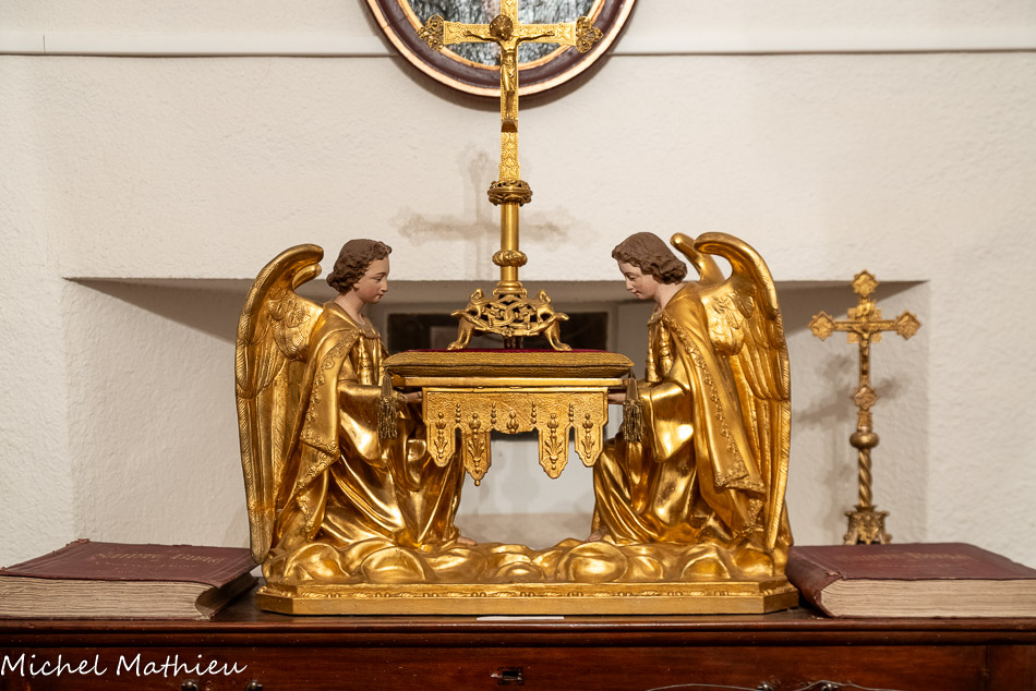 <center>L’ermitage de Saint-Ferréol</center>A gauche de l'entrée. L'archange Raphaël  conseille à Tobie de prendre le poisson qui va guérir de sa cécité son père, et Sara, sa future femme, tourmentée par sept démons. Encadrant la porte, l'archange Raphaël.