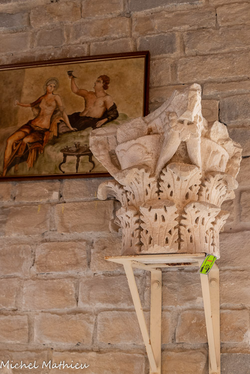 Dans le couloir se trouvent 2 chapiteaux corinthiens (à feuilles d'acanthe).