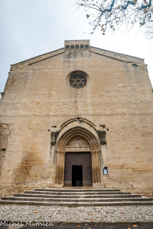 La façade principale, à l'ouest, présente des traces de la corniche d'origine, l'ensemble est surmonté par des mâchicoulis du XVe s, l'oculus est décorée d'une rosace polygonale probablement refaite en 1653.