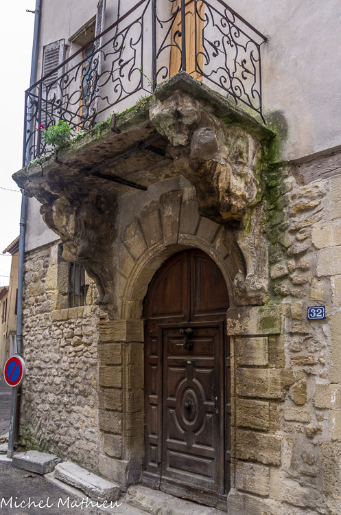 Malaucène. L'hôtel de Saunier. Il aurait été construit au XVIIe siècle par Philippe de Saunier, baron de Violés. Il s'étendait à l'origine jusqu'aux remparts, mais il fut démembré en 1882. Malgré leur état de dégradation, on admirera les atlantes qui soutiennent le balcon ; la balustrade porte les initiales du notaire Antoine Barnoin, qui acheta l'immeuble en 1780.