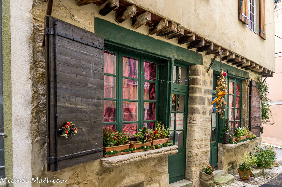 La fontaine est adossée à une ancienne maison à encorbellement qui est un bon exemple de ce que furent jadis les boutiques de cette rue commerçante.