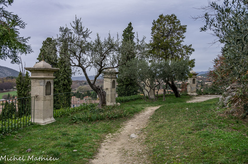Malaucène. Le calvaire de Malaucène. Le chemin de croix, commémoration de la Passion du Christ. Le circuit des oratoires, financé par des familles malaucéniennes au XIXe siècle, se pratique dans le sens inverse des aiguilles d'une montre depuis la porte d'entrée du calvaire. C'est à l'initiative de l'association des Amis du Vieux Village que l'artiste plasticien Luc Ta-Van-Thinh a réalisé, entre 2007 et 2009, l'ensemble des céramiques.