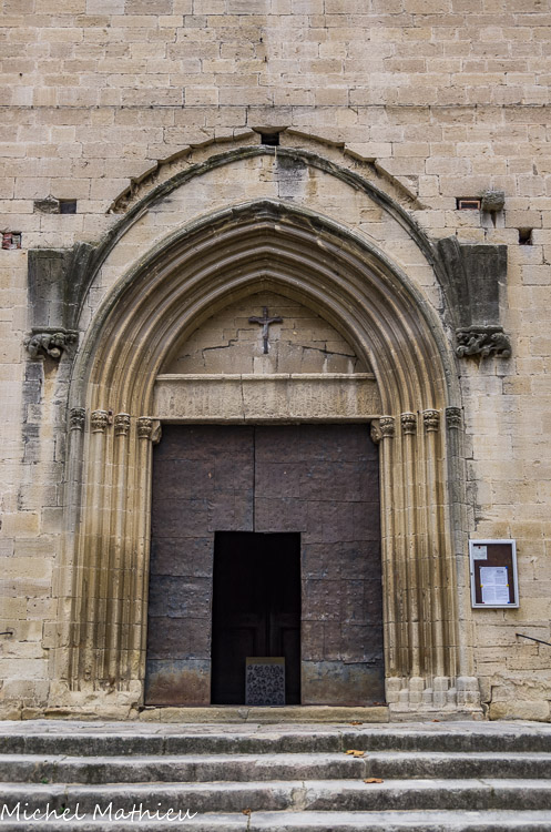 Le portail, présente des similitudes avec l'Église Notre-Dame-de-Bon-Repos de Montfavet, construite entre 1343 et 1347. Le linteau vandalisé en 1792, porte les traces du Christ et de ses Apôtres placés dans une colonnade.